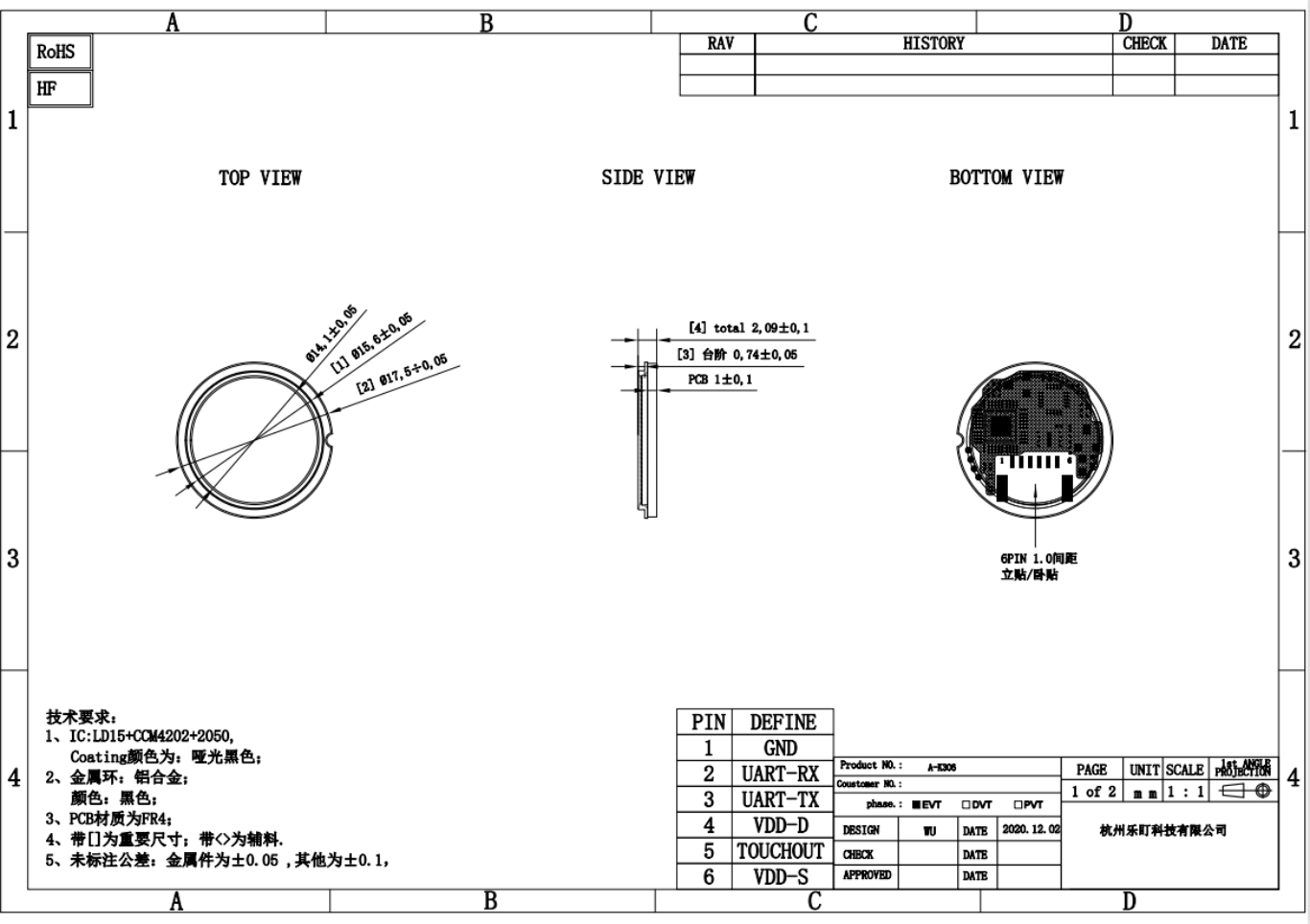 6 | VCC_3V3A | 指紋傳感器供電電源3.3V |